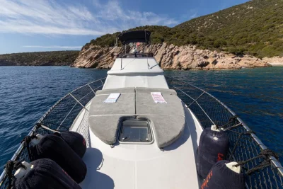Şık ve güçlü yapısıyla dikkat çeken Lapina 1 motoryat, Bodrum çıkışlı deniz gezileri için konforlu ve keyifli bir alternatiftir. Küçük gruplar ve aileler için ideal olan bu tekne, sakin bir gün geçirmek isteyen misafirlere özel bir atmosfer sunar. Deneyimli mürettebatımız tur boyunca tüm detaylarla ilgilenerek Bodrum özel tekne turu deneyiminizi daha da keyifli hale getirir.