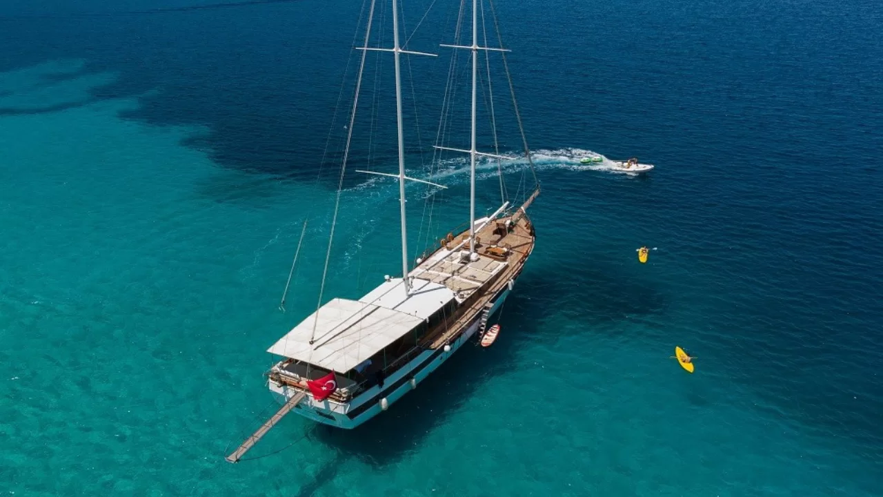 Он будет сопровождать вас, наших уважаемых клиентов, в голубом путешествии по уникальным бухтам Бодрума благодаря своему роскошному дизайну и качеству домашнего комфорта.