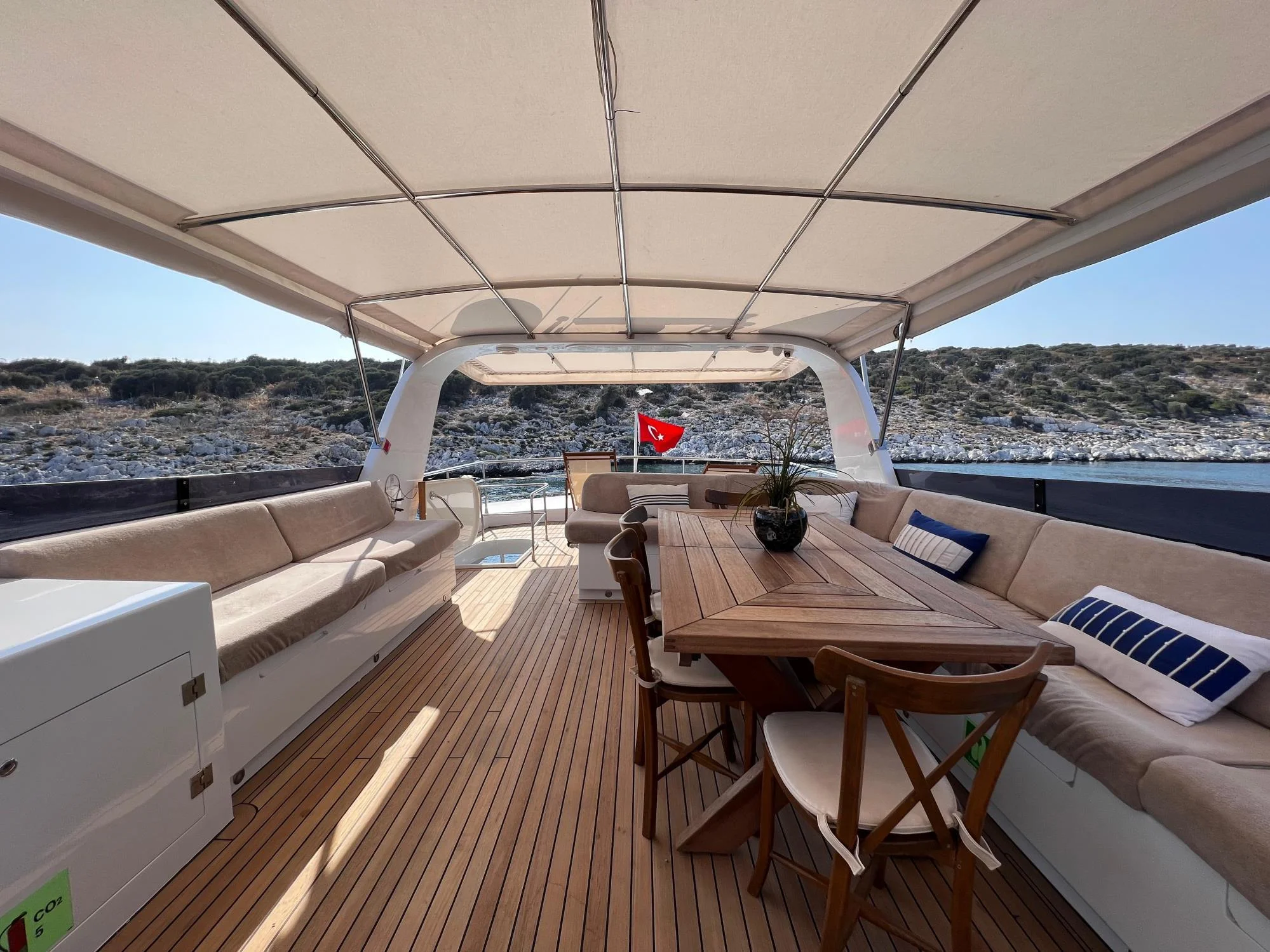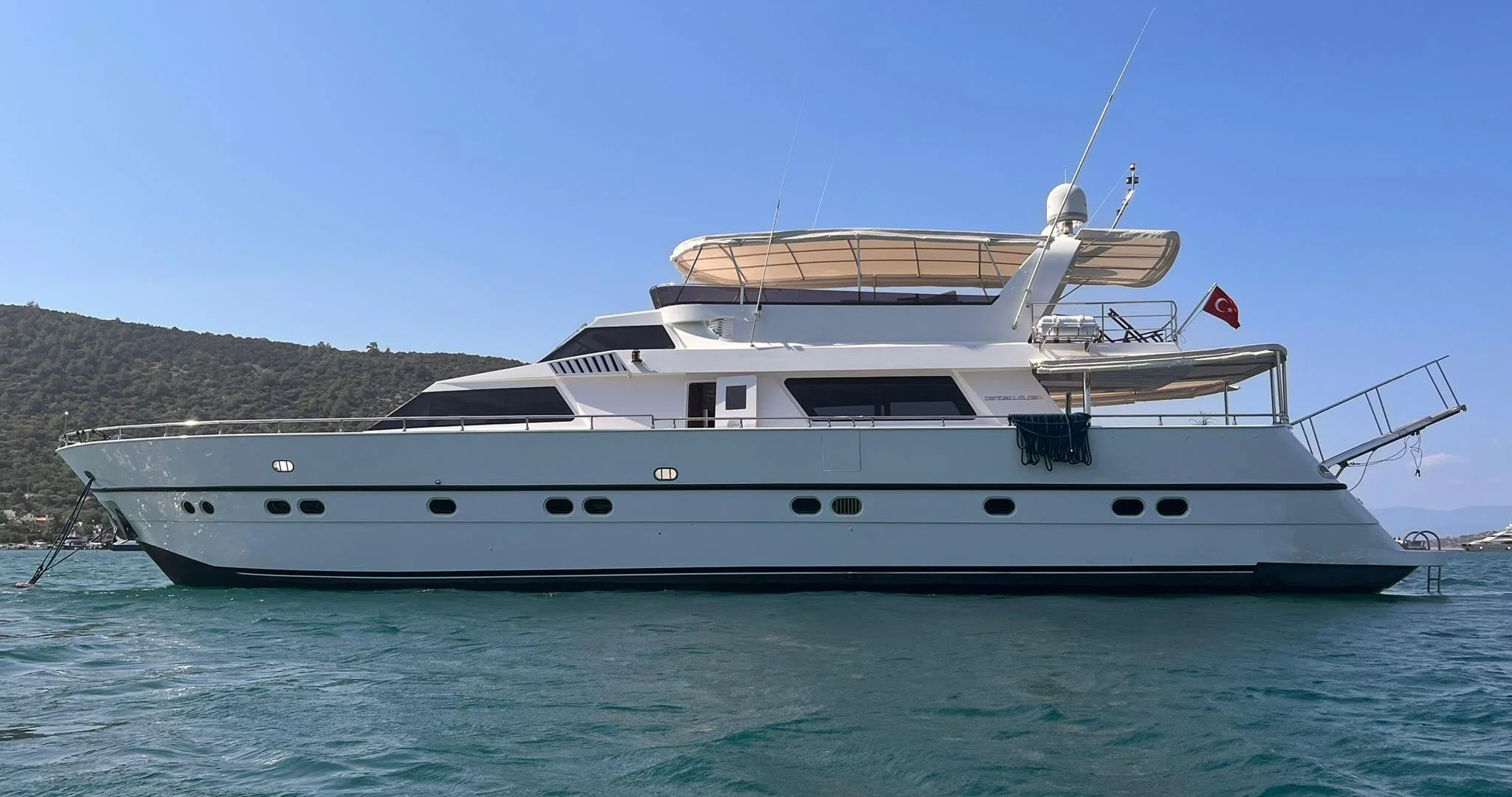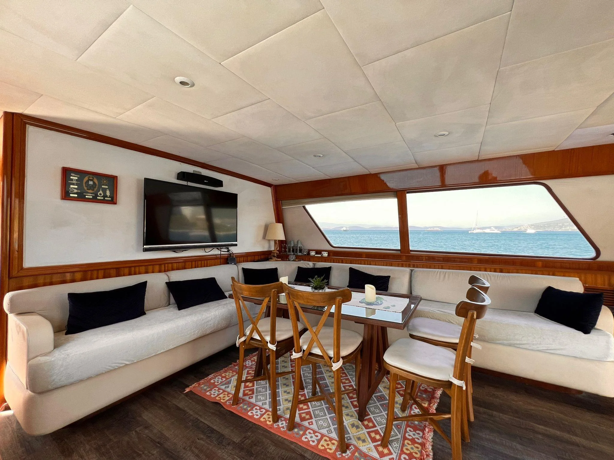Yaklaşık 16 metre uzunluğundaki Sky motoryat, kompakt ama oldukça kullanışlı alanlara sahiptir. Geniş güverte bölümü güneşlenmek ve dinlenmek için ideal bir alan sunarken, iç bölümde bulunan kabinler kısa molalar için rahat bir ortam sağlar. Duş, tuvalet ve giyinme alanı gibi pratik donanımlar sayesinde Bodrum özel tekne turu sırasında denizde geçen zaman konforlu ve keyifli olur.