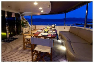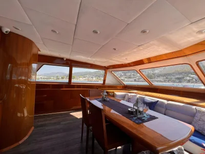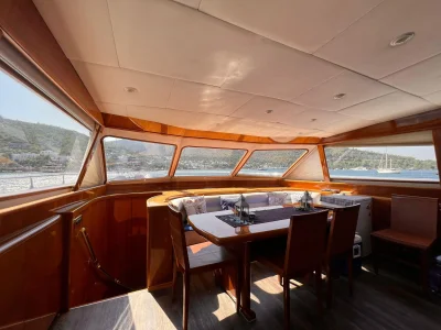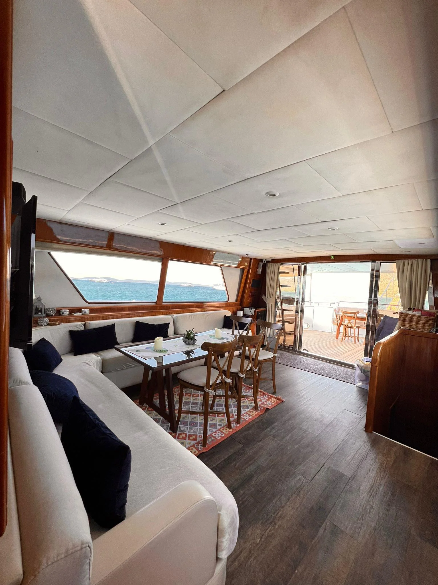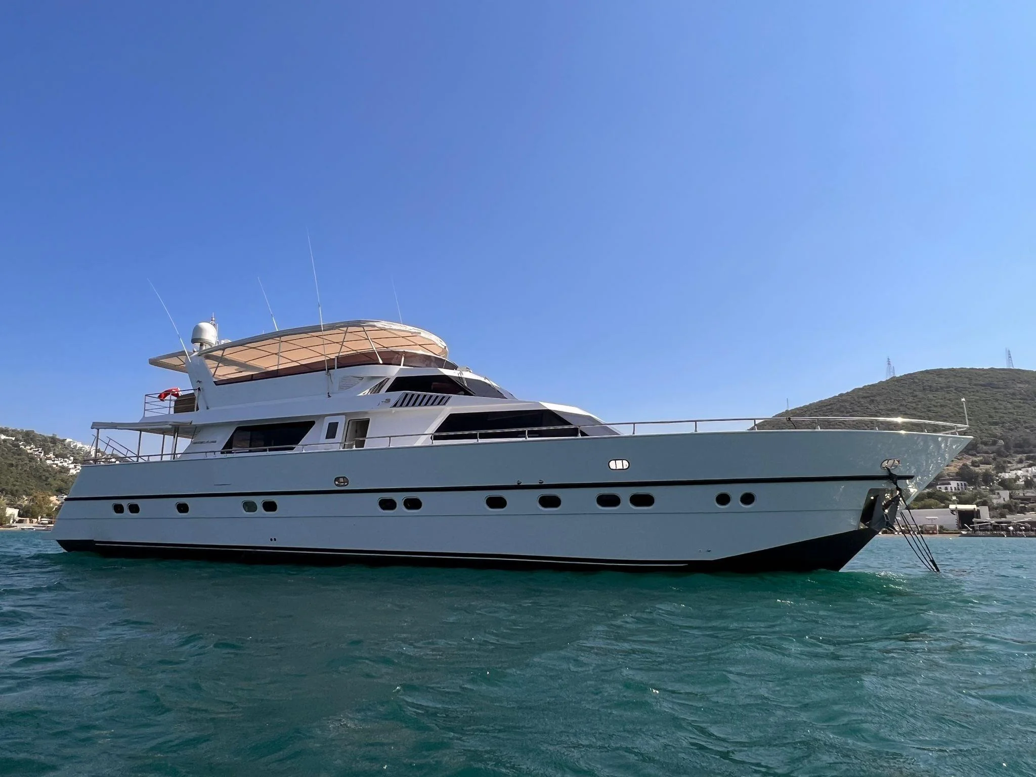 Yaklaşık 16 metre uzunluğundaki Sky motoryat, kompakt ama oldukça kullanışlı alanlara sahiptir. Geniş güverte bölümü güneşlenmek ve dinlenmek için ideal bir alan sunarken, iç bölümde bulunan kabinler kısa molalar için rahat bir ortam sağlar. Duş, tuvalet ve giyinme alanı gibi pratik donanımlar sayesinde Bodrum özel tekne turu sırasında denizde geçen zaman konforlu ve keyifli olur.